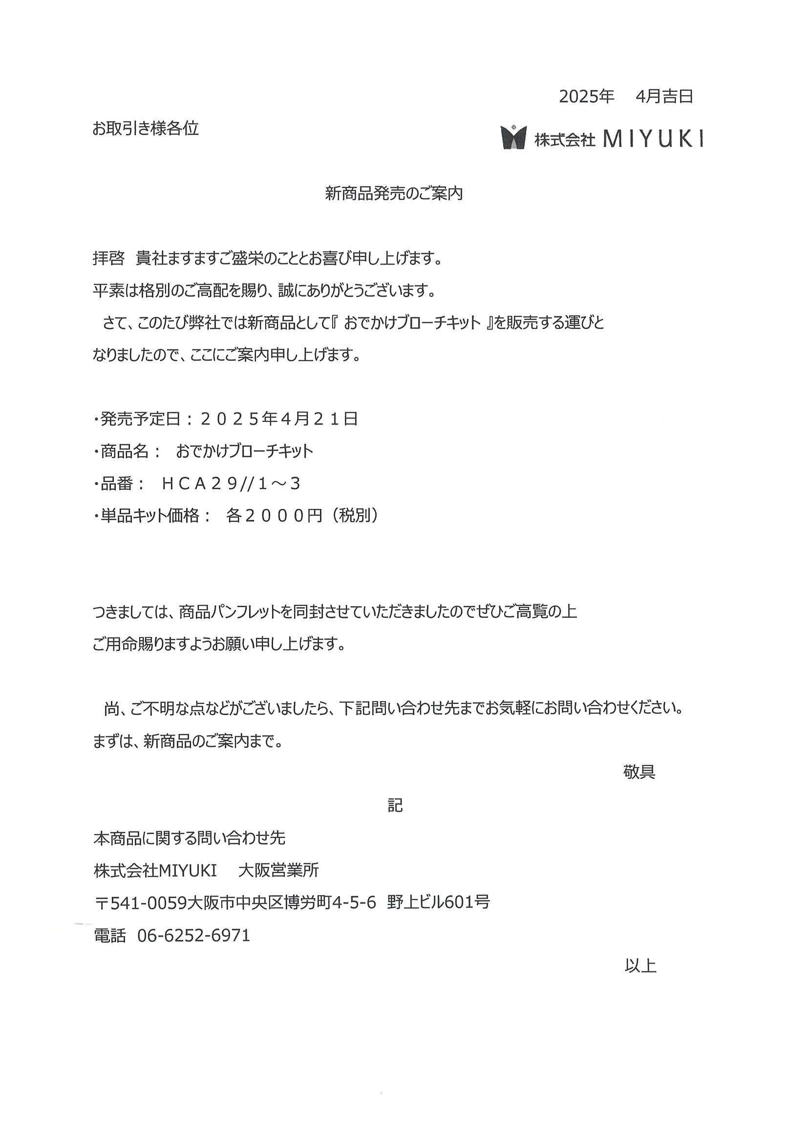 ![]() MIYUKI_新商品発売のご案内「おでかけブローチキット」1 |