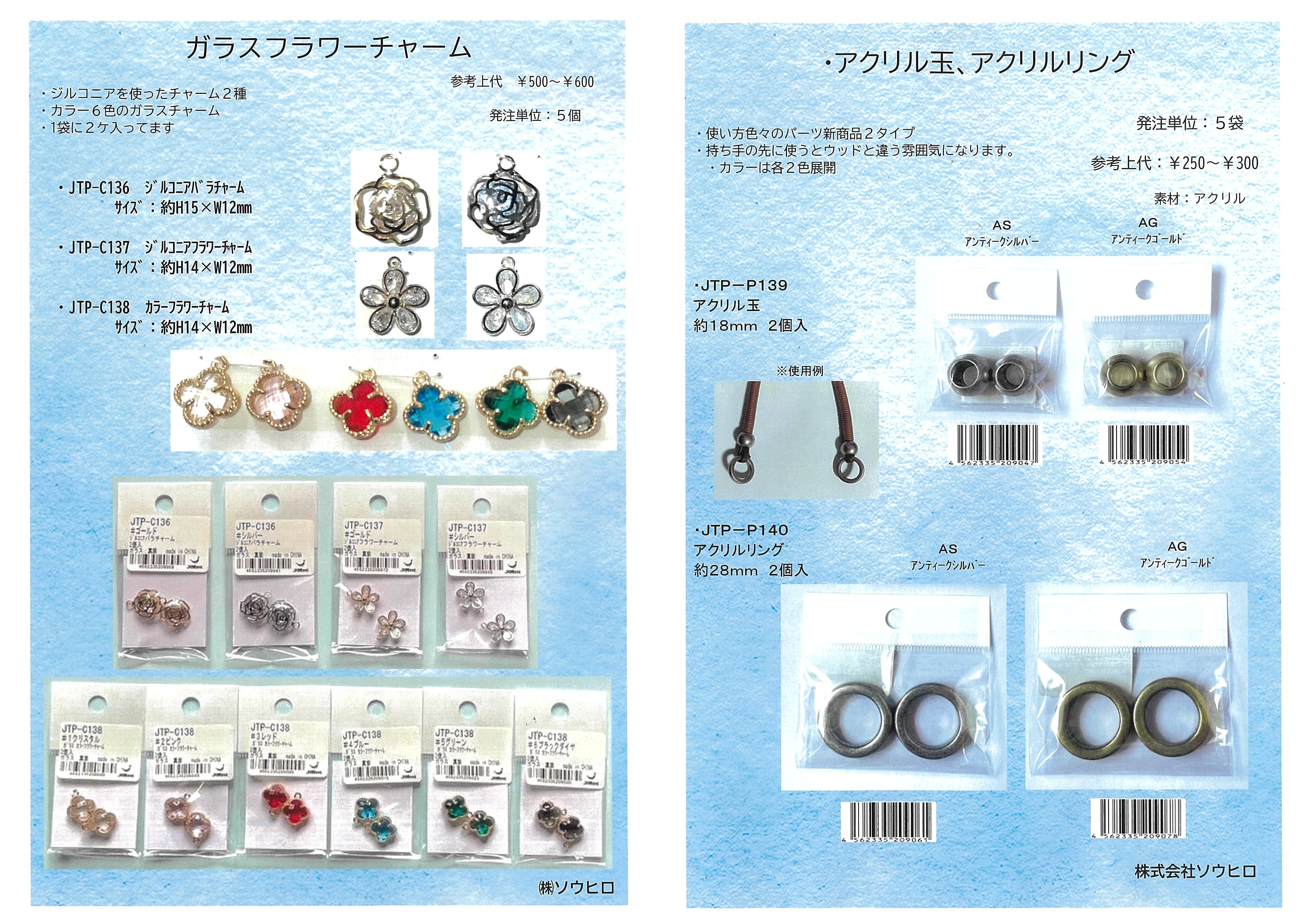 ![]() ソウヒロ_「ガラスフラワーチャーム」「アクリル玉、アクリルリング」 |