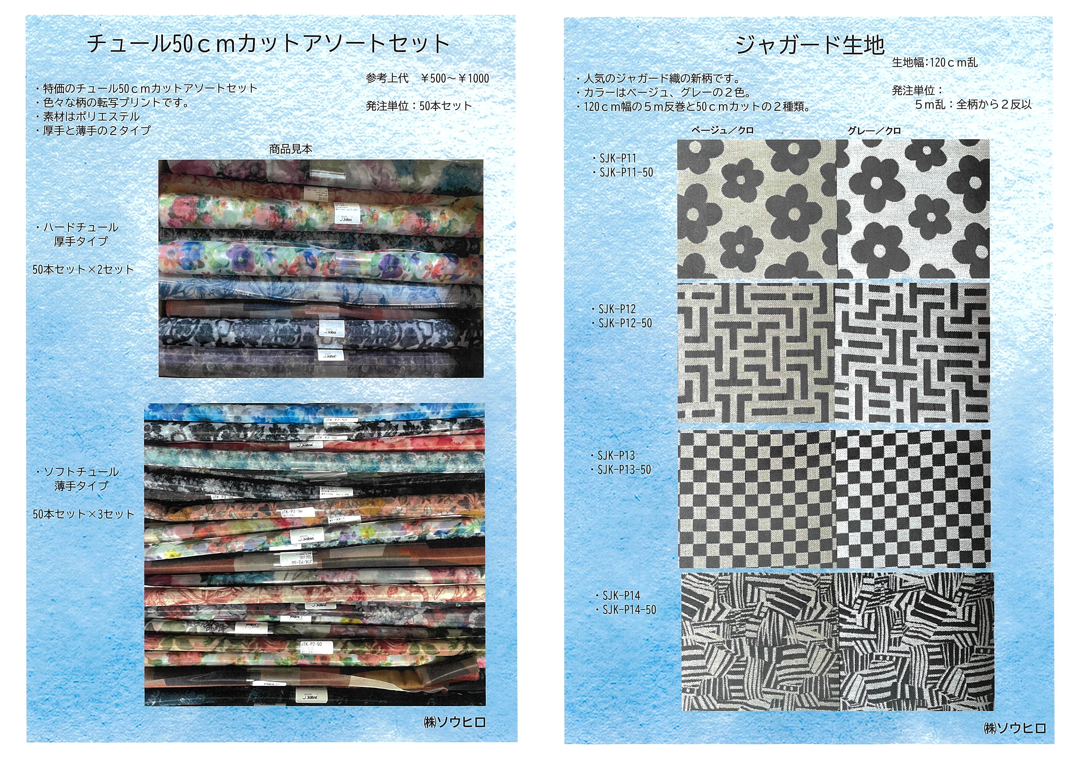 ![]() ソウヒロ_「チュール50cmカットアソートセット」「ジャガード生地」 |