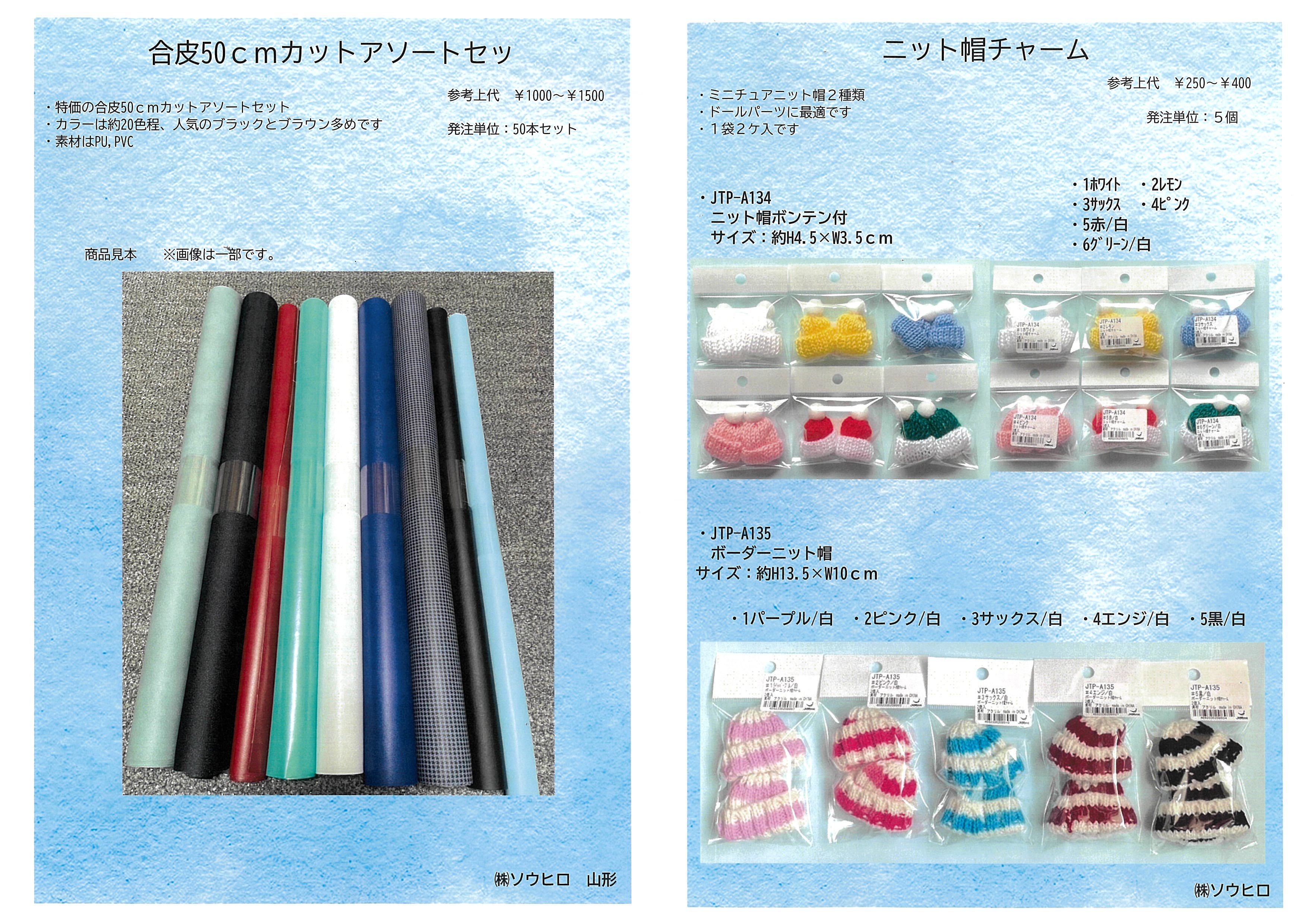 ![]() ソウヒロ_「合皮50cmカットアソートセット」「ニット帽チャーム」 |