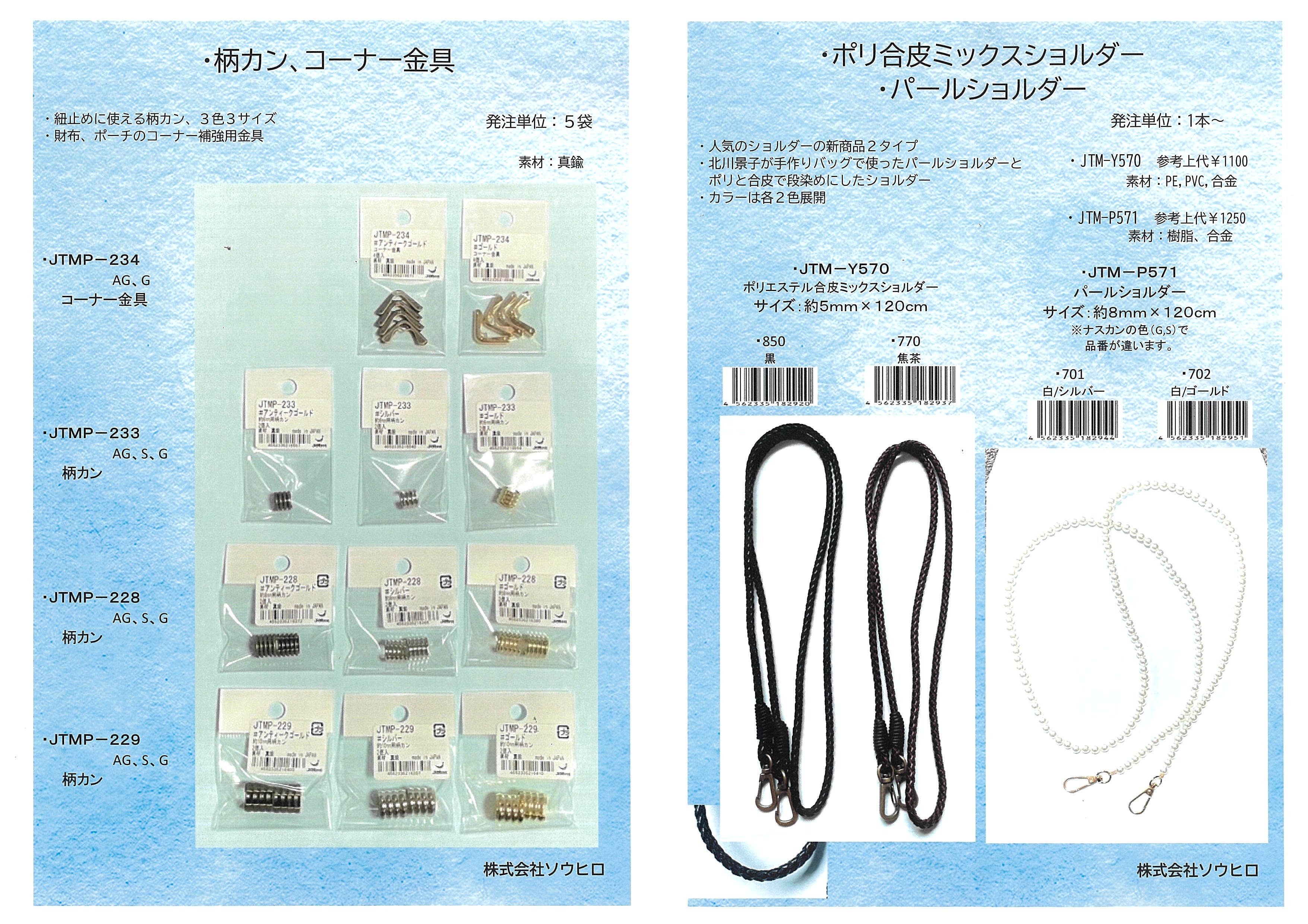 ![]() ソウヒロ_「柄カン、コーナー金具」「ポリ合皮ミックスショルダーパールショルダー」 |