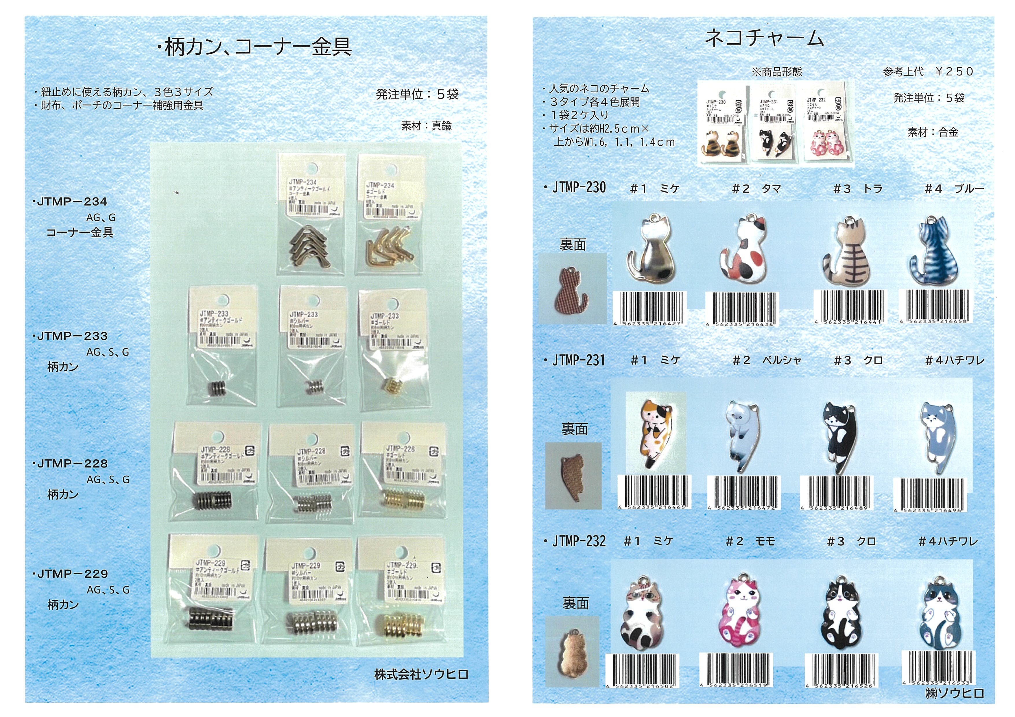 ![]() ソウヒロ_柄カン、コーナー金具」「ネコチャーム |