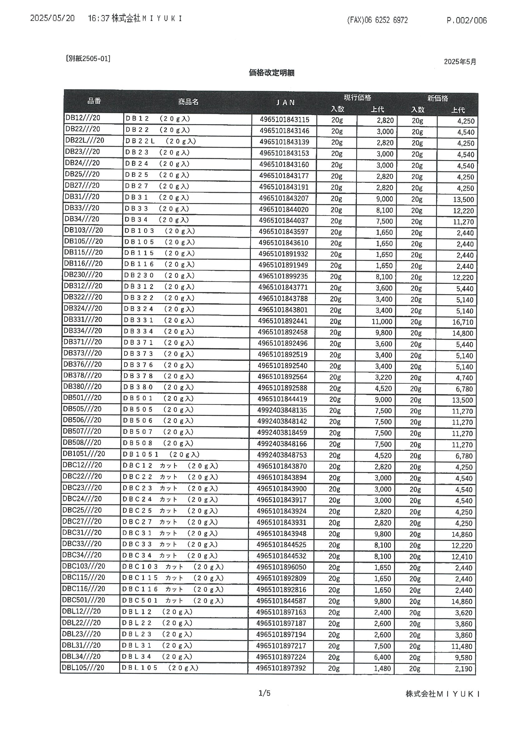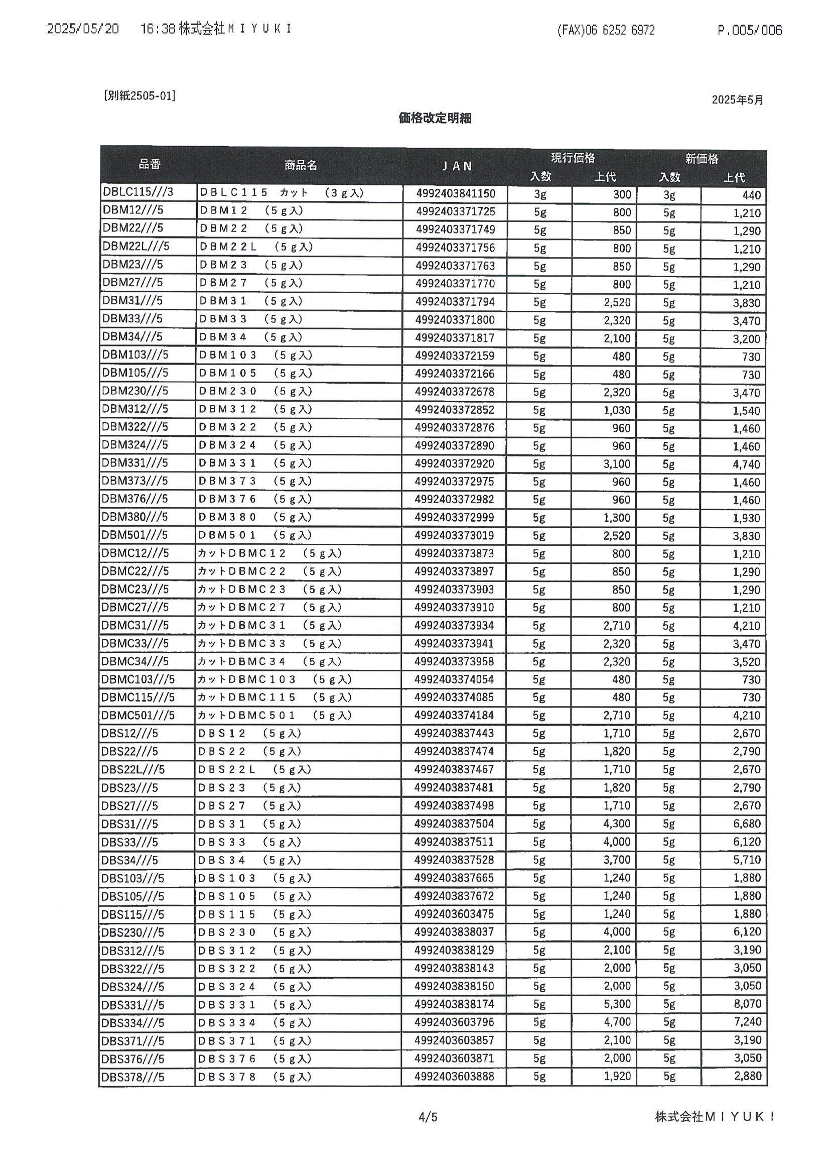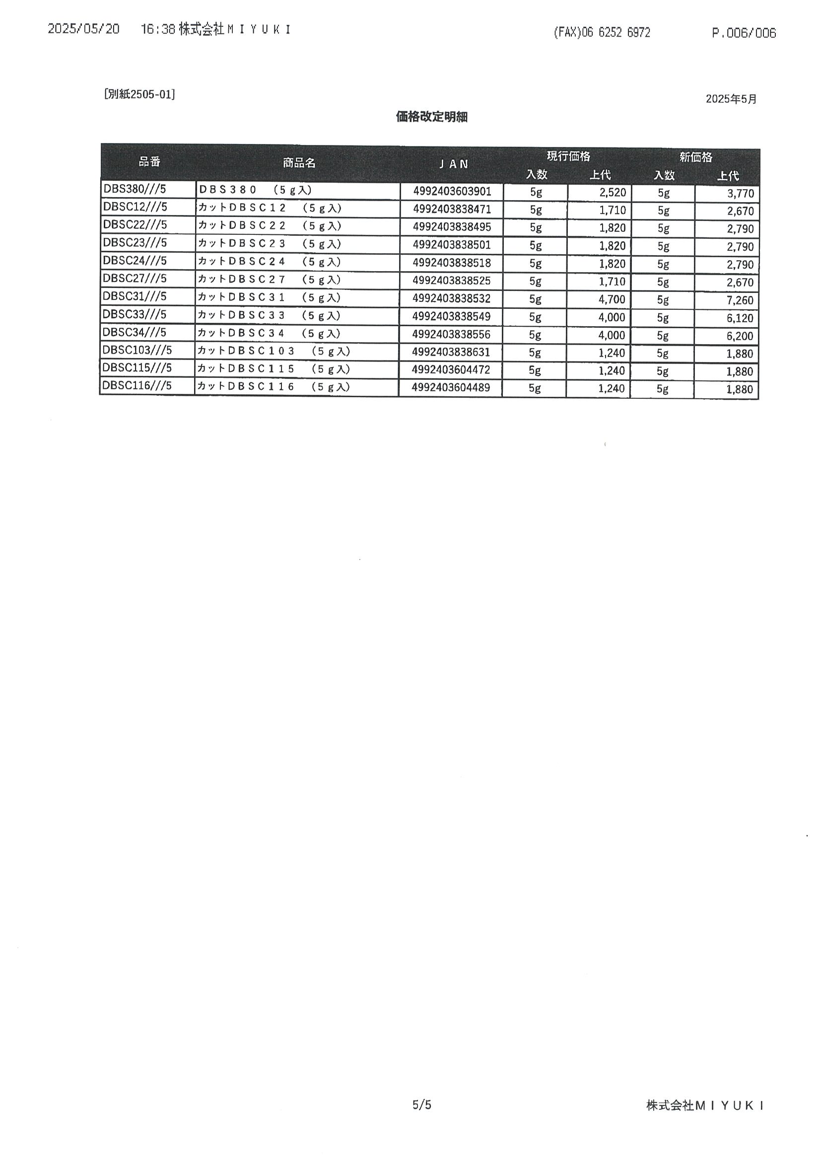 MIYUKI_価格改定のご案内「デリカビーズ(ゴールド関係)」5