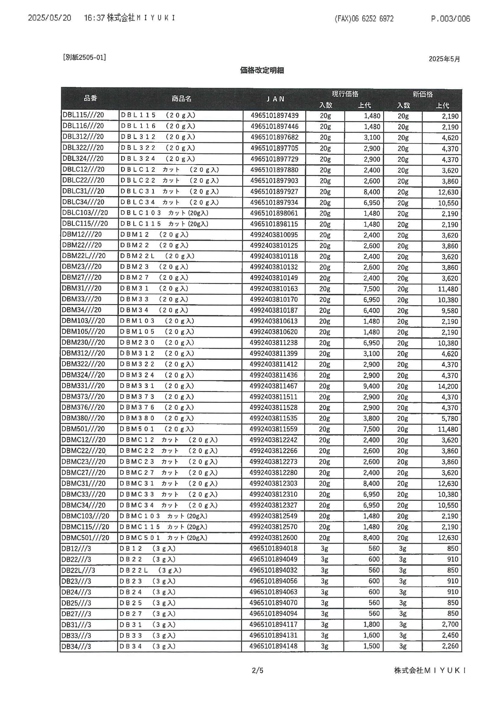 MIYUKI_価格改定のご案内「デリカビーズ(ゴールド関係)」3