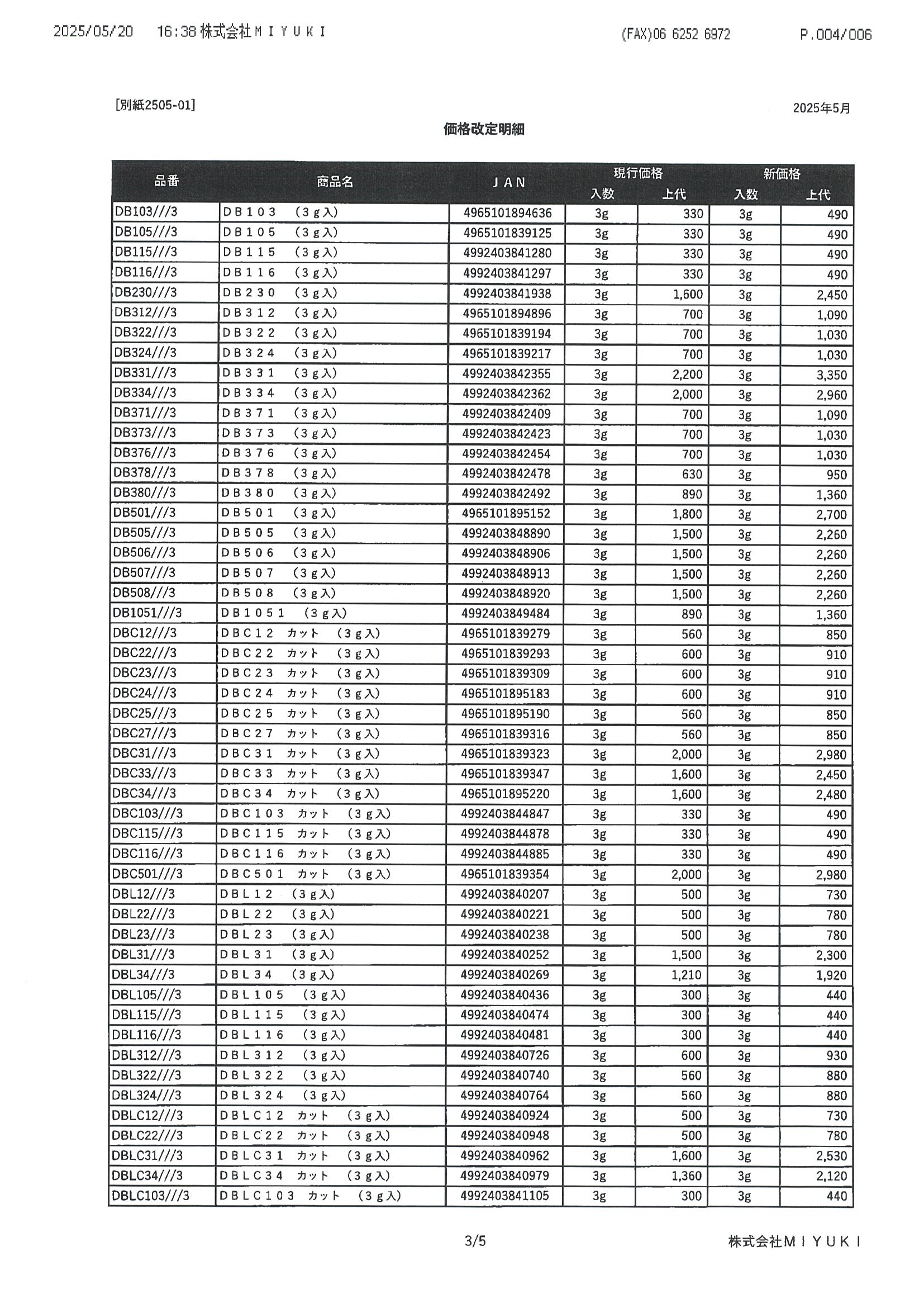 MIYUKI_価格改定のご案内「デリカビーズ(ゴールド関係)」4