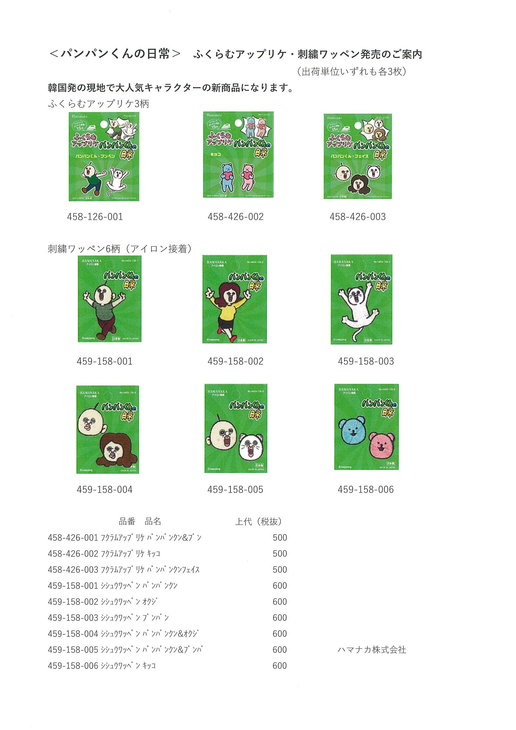 ハマナカ_ふくらむアップリケ・刺繍ワッペン発売のご案内「パンパンくんの日常」