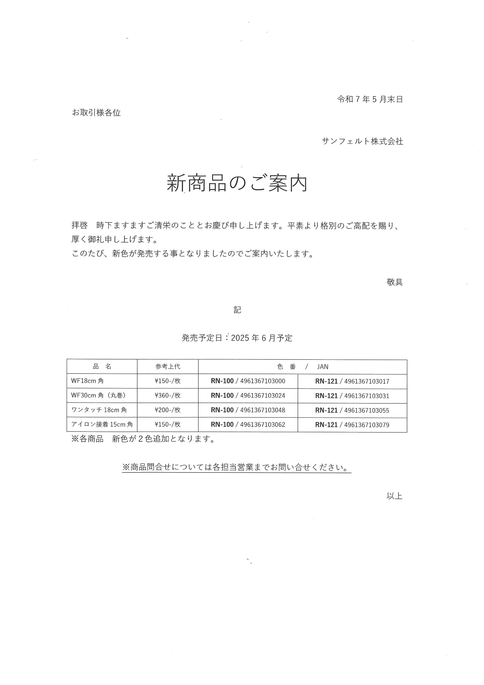 ![]() サンフェルト_ウォッシャブルフェルト新色 |