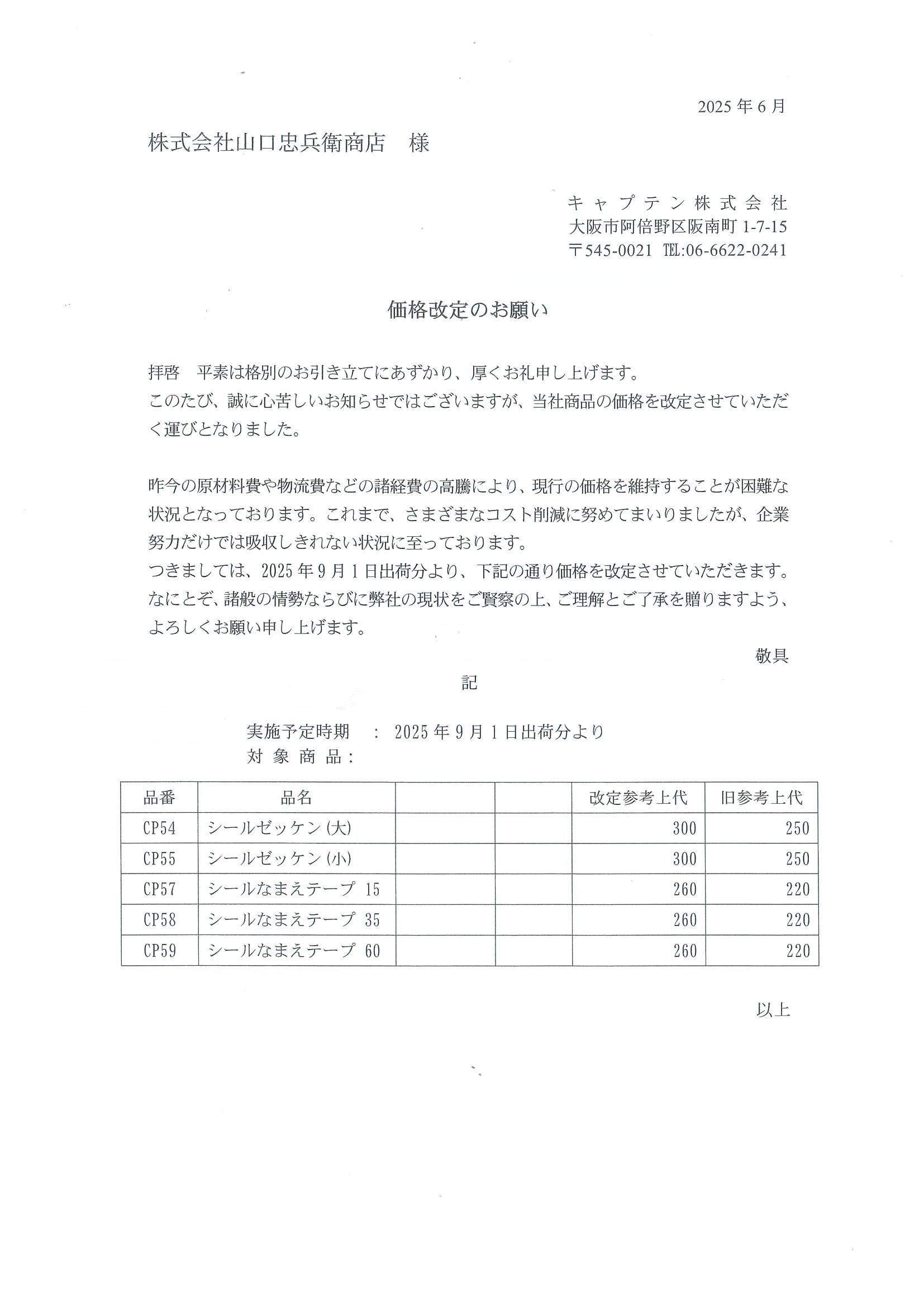 ![]() キャプテン_価格改定のお願い_2025年9月1日より |