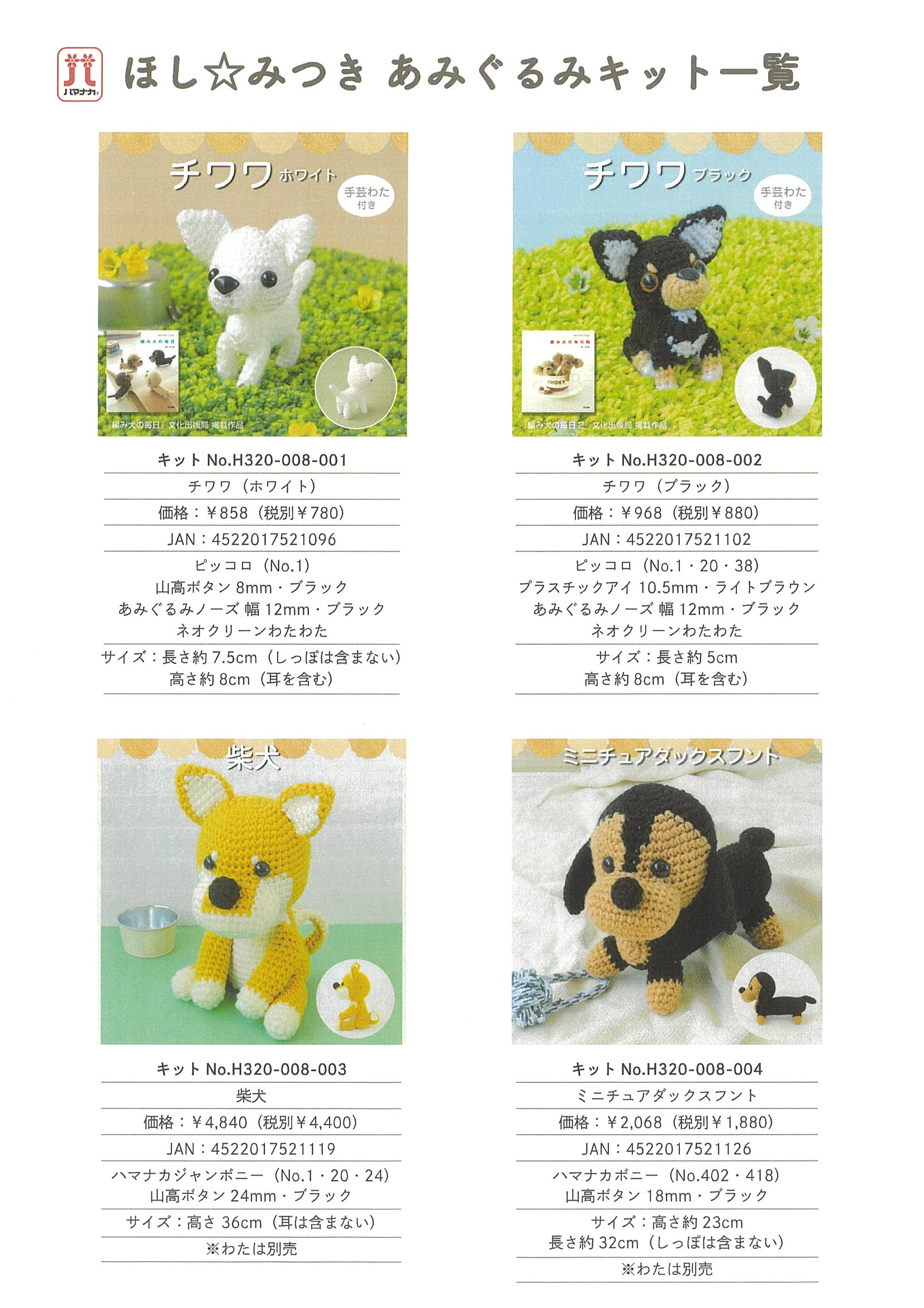 ![]() ハマナカ_ほし★みつき_あみぐるみキット一覧 |