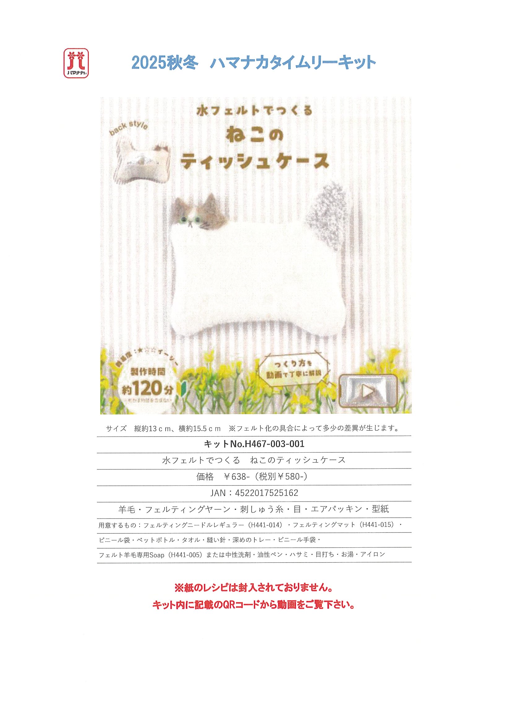 ハマナカ_水フェルトでつくる「ねこのティッシュケース」