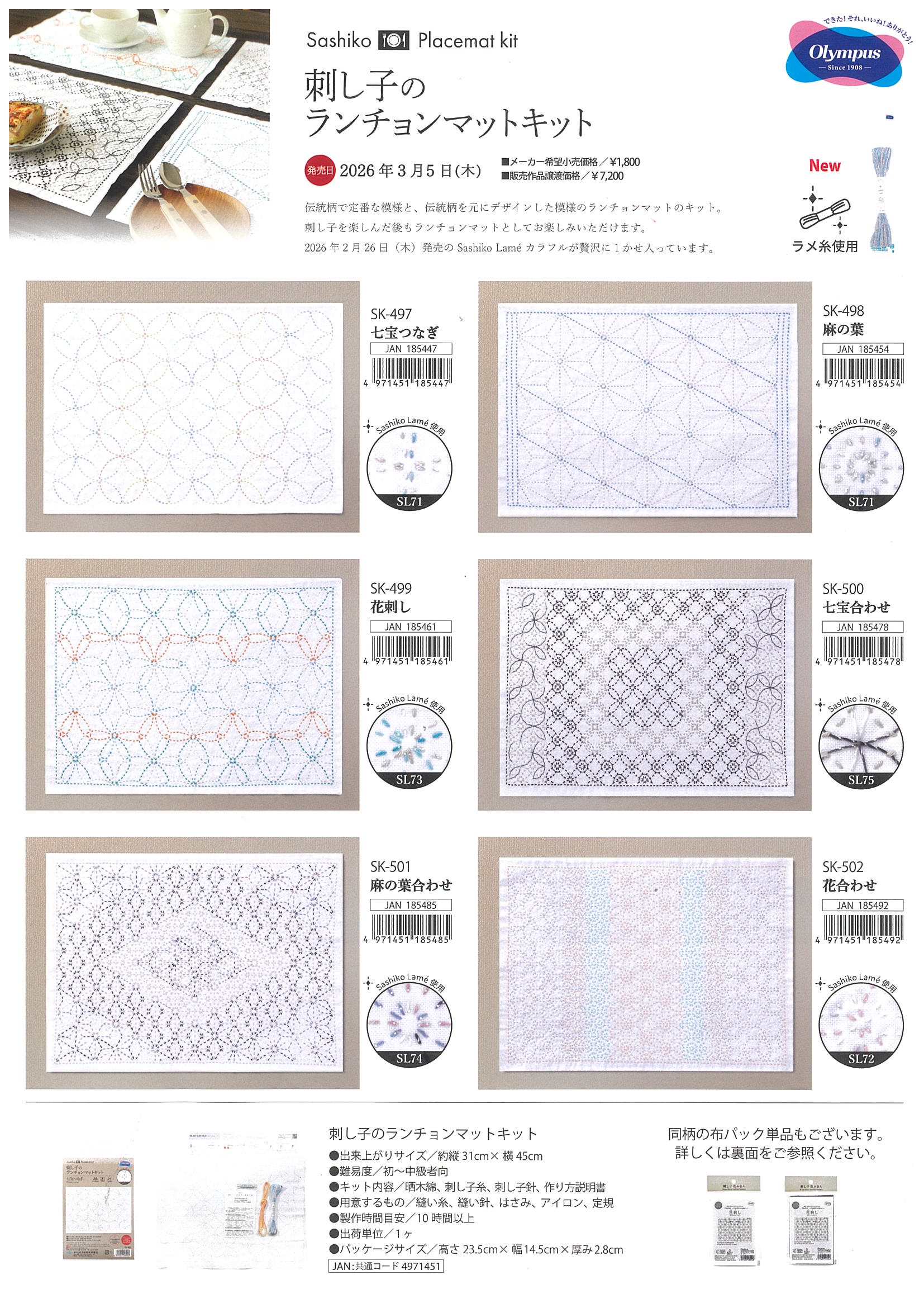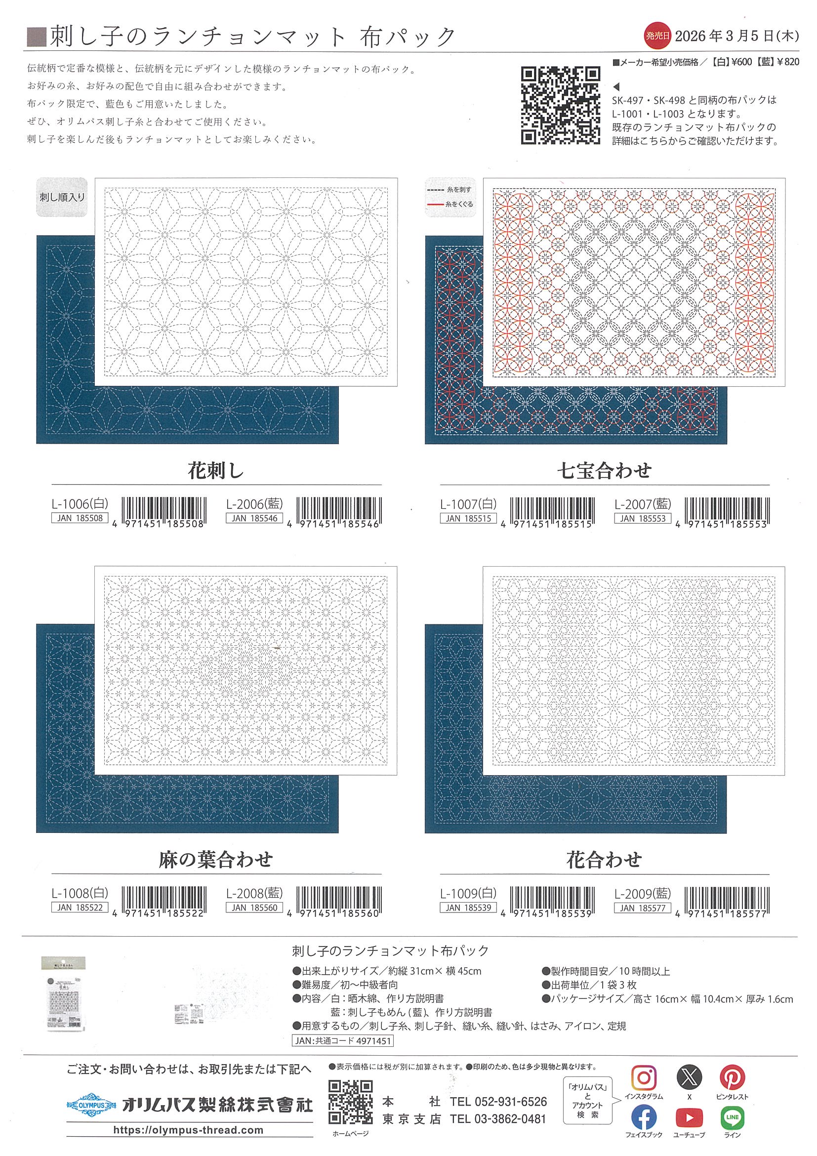 ![]() オリムパス_刺し子のランチョンマット布バッグ1 |