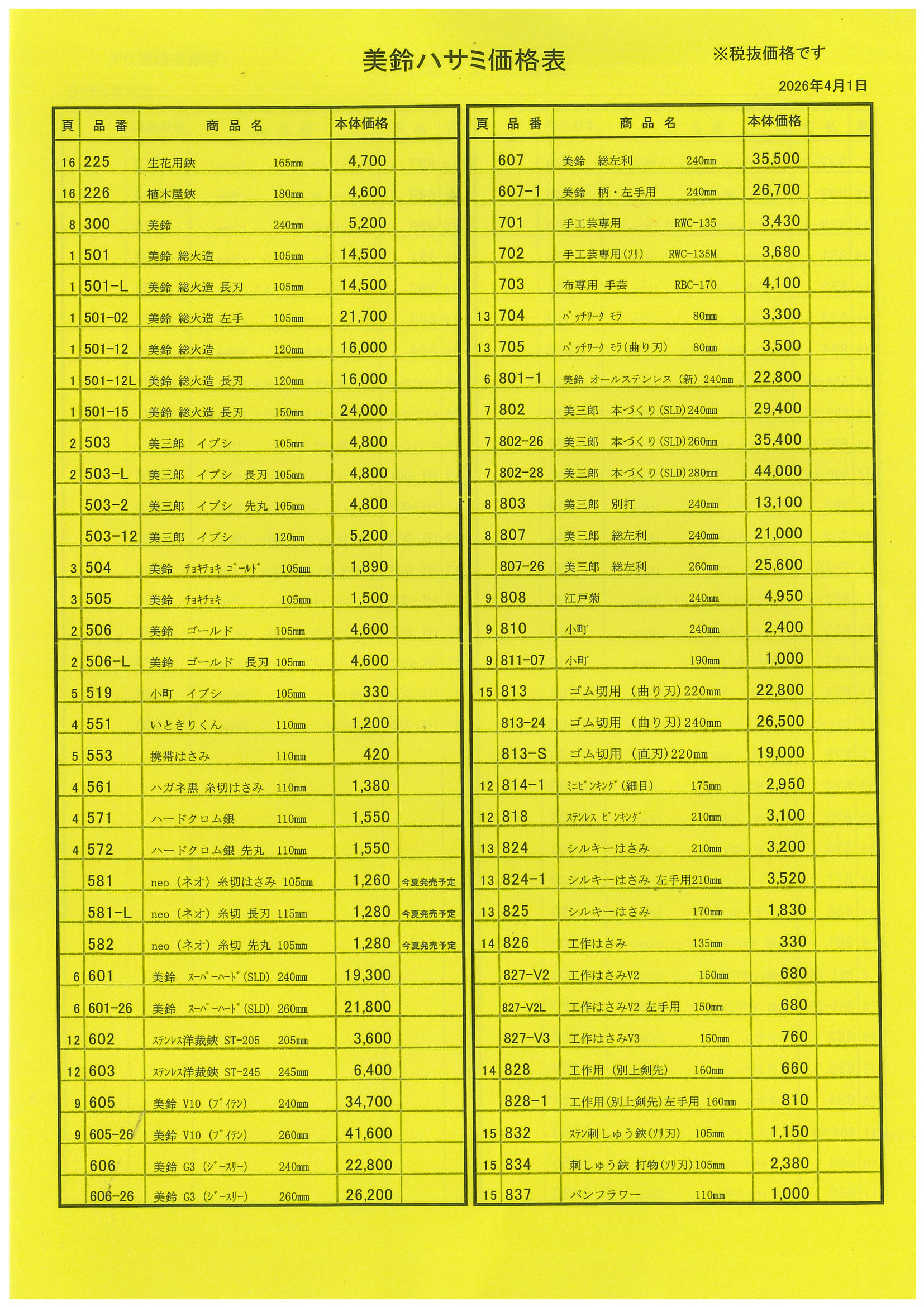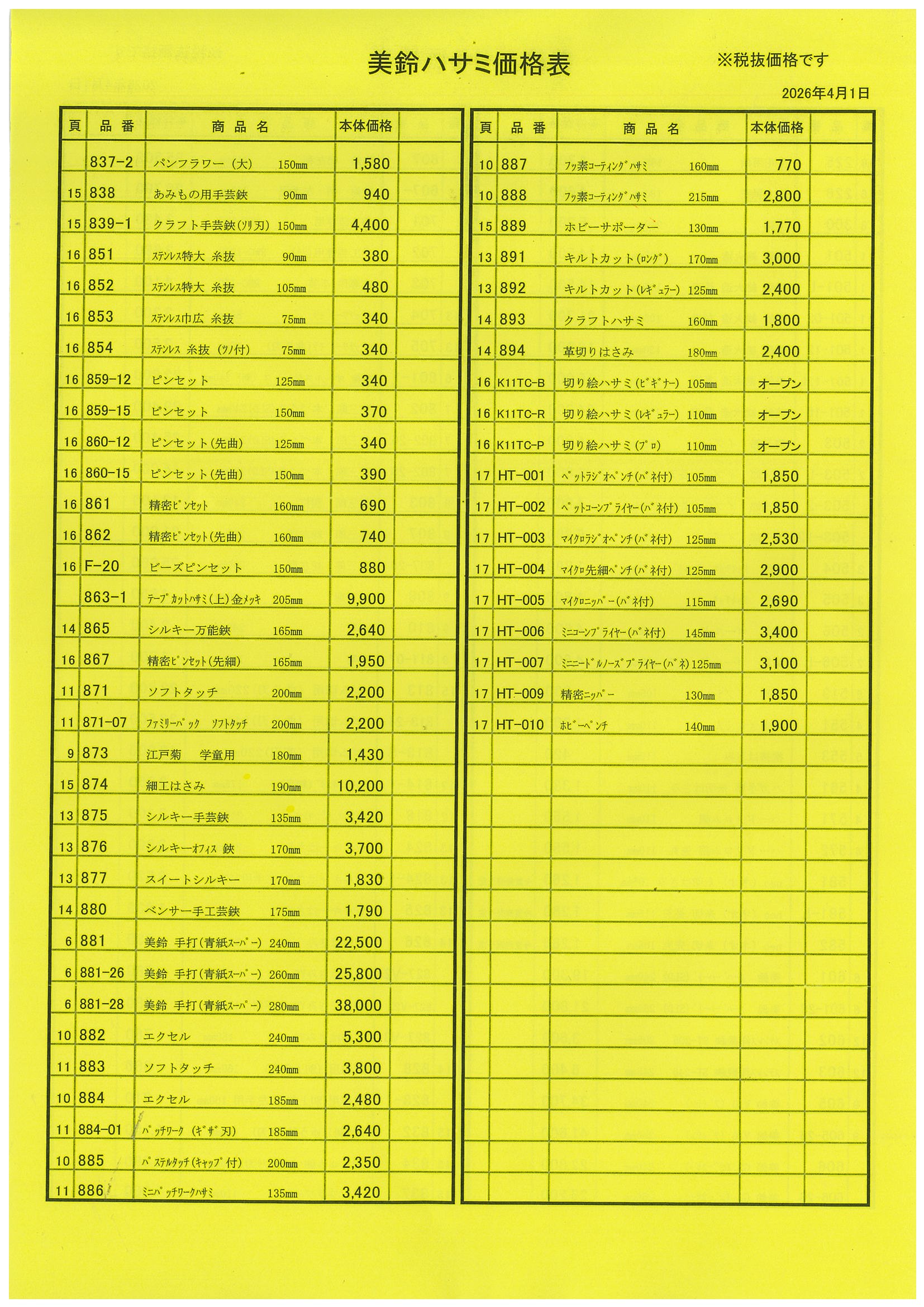 ![]() 美鈴ハサミ_価格表2026-04-01より2 |